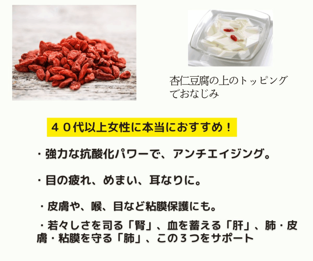 漢方では、目の疲れに良いというのも有名。パソコンやスマホで、目を酷使している現代人。ぜひ40代以上になったら、取り入れてほしいです。