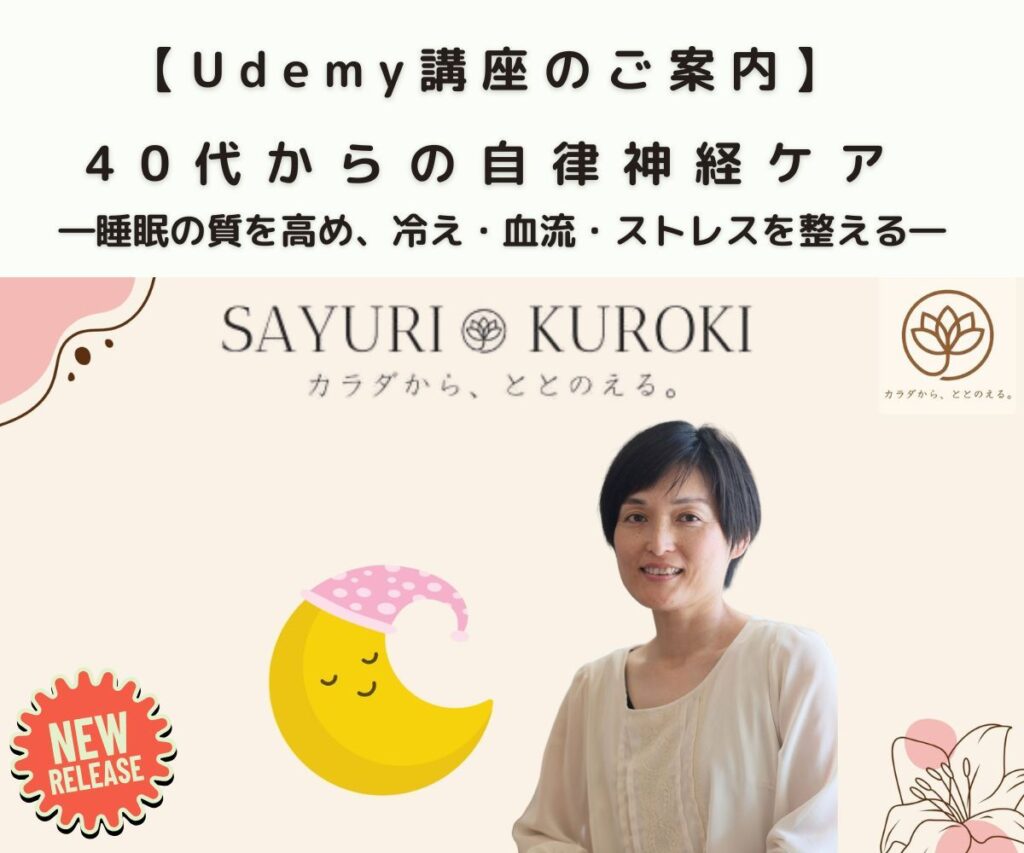 先月末、新しいUdemy講座「40代からの自律神経ケアー睡眠の質を高め、冷え・血流・ストレスを整えるー」を発売しました。