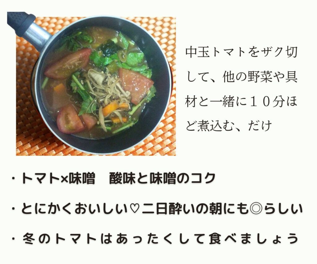 是非、毎日の味噌汁にトマトを活用してみてくださいね。