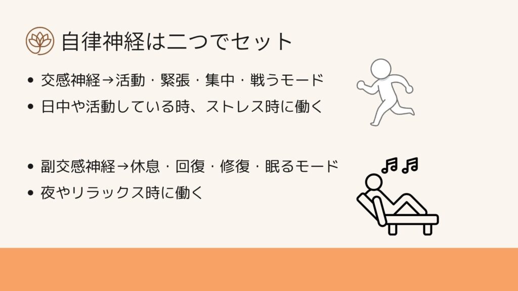 自律神経には、大きく分けて2つの働きがあります。